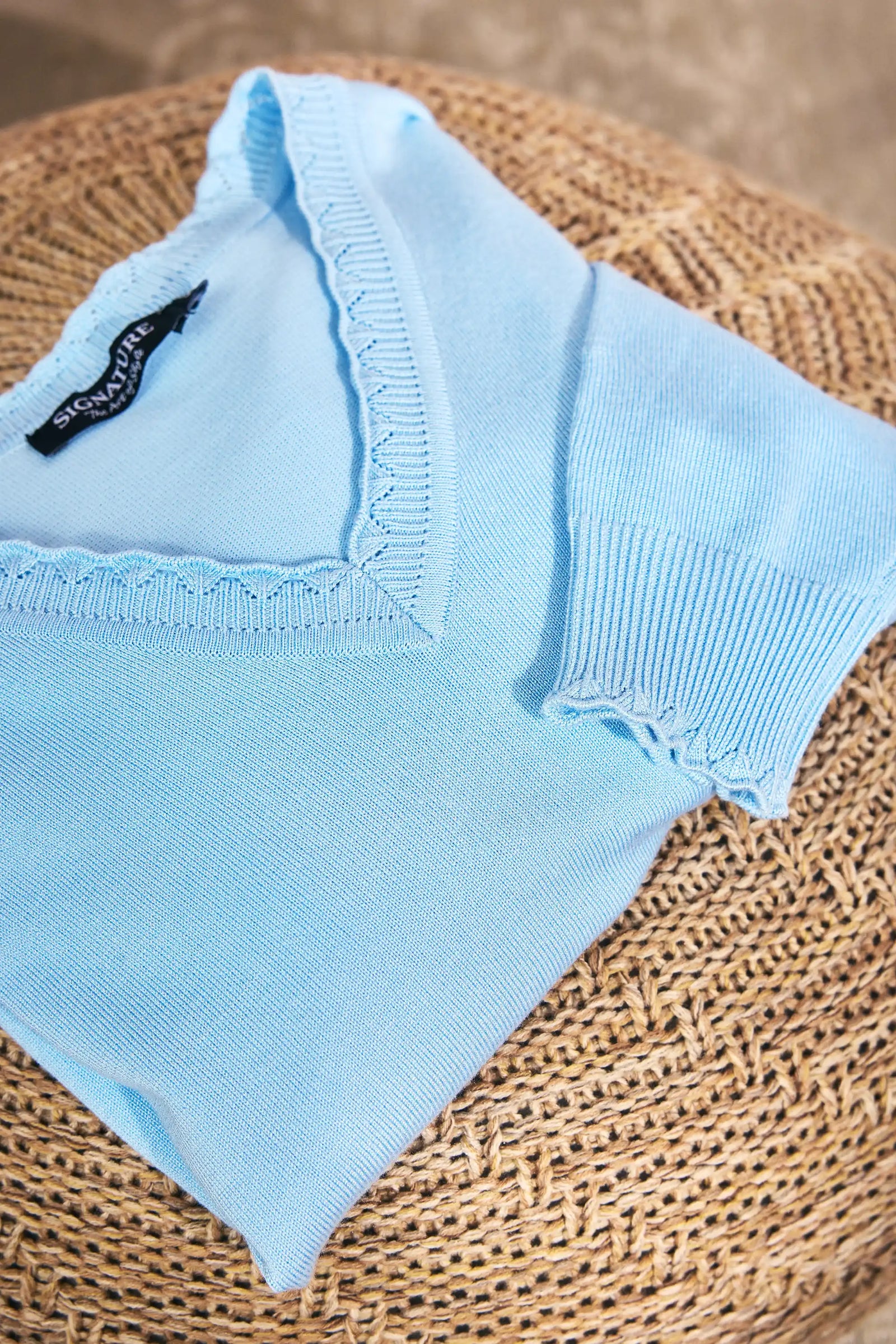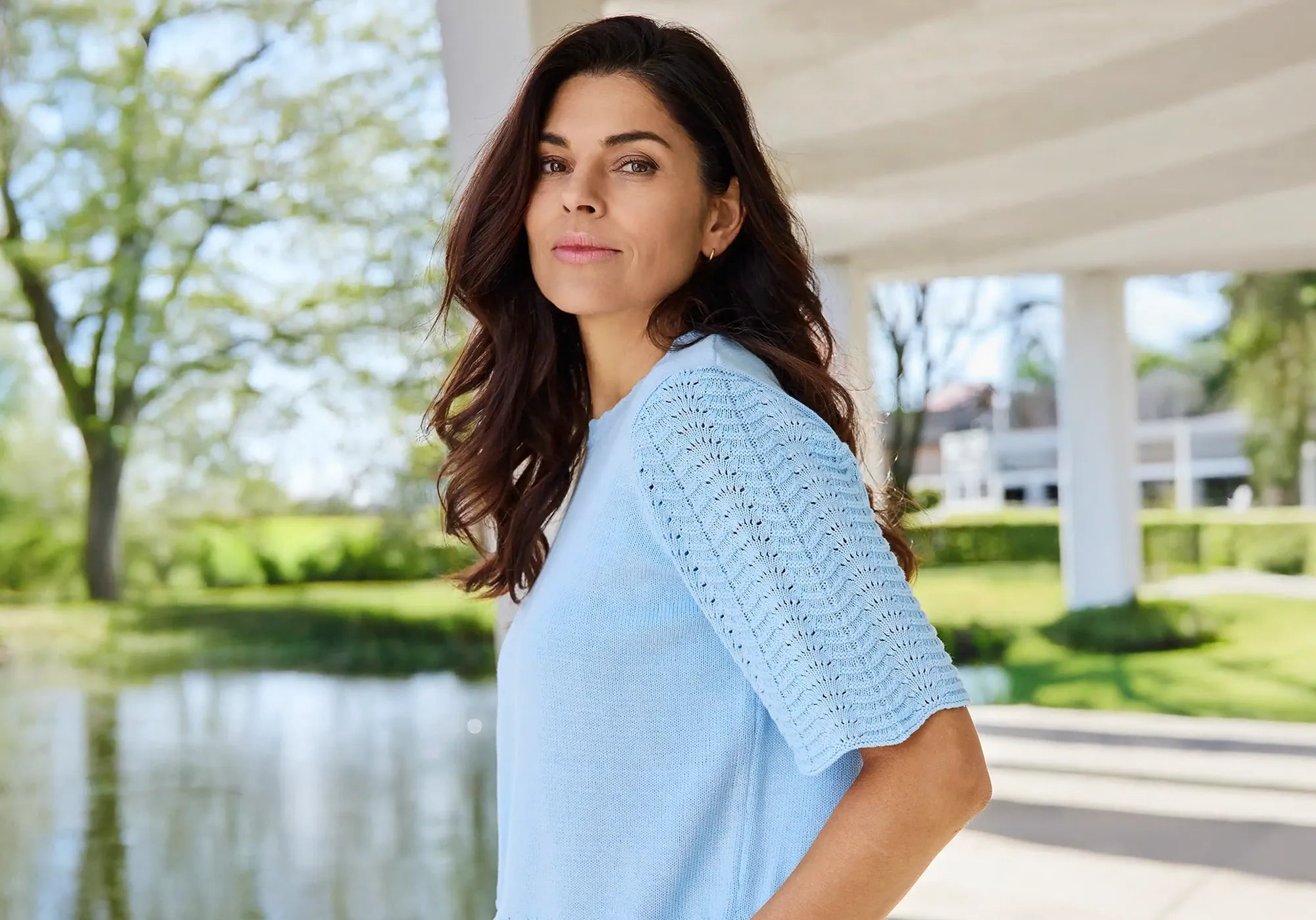 Begrüßen Sie den Frühling mit einem weichen, leichten Strickpullover mit feinsten Details. Ideal für den Alltag und gemütliche Momente.